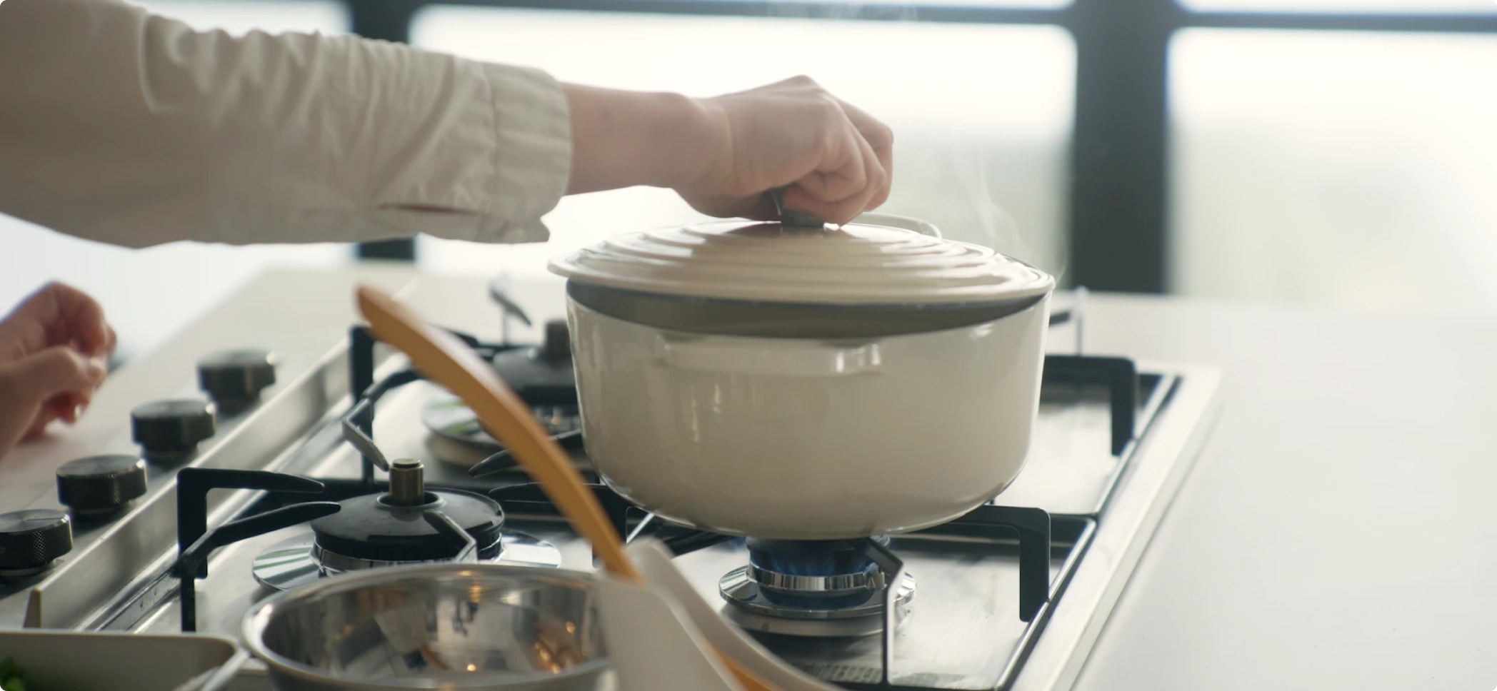 五十嵐可菜さんにとって、道具選びのいちばんの基準は「長く使えること」。中華料理を専門にする料理人として、日々鍋を扱うなかで、洋服も道具も“使い込むことで味が出る”という。そんな価値観の延長にあるのが、ル・クルーゼ。手に馴染むのは、5年以上愛用している〈ココット・オーバル〉だ。「丸型も好きなんですけど、つい手が伸びるのはオーバル。深さがあるので、4〜5人分のまかないにもぴったりなんです」