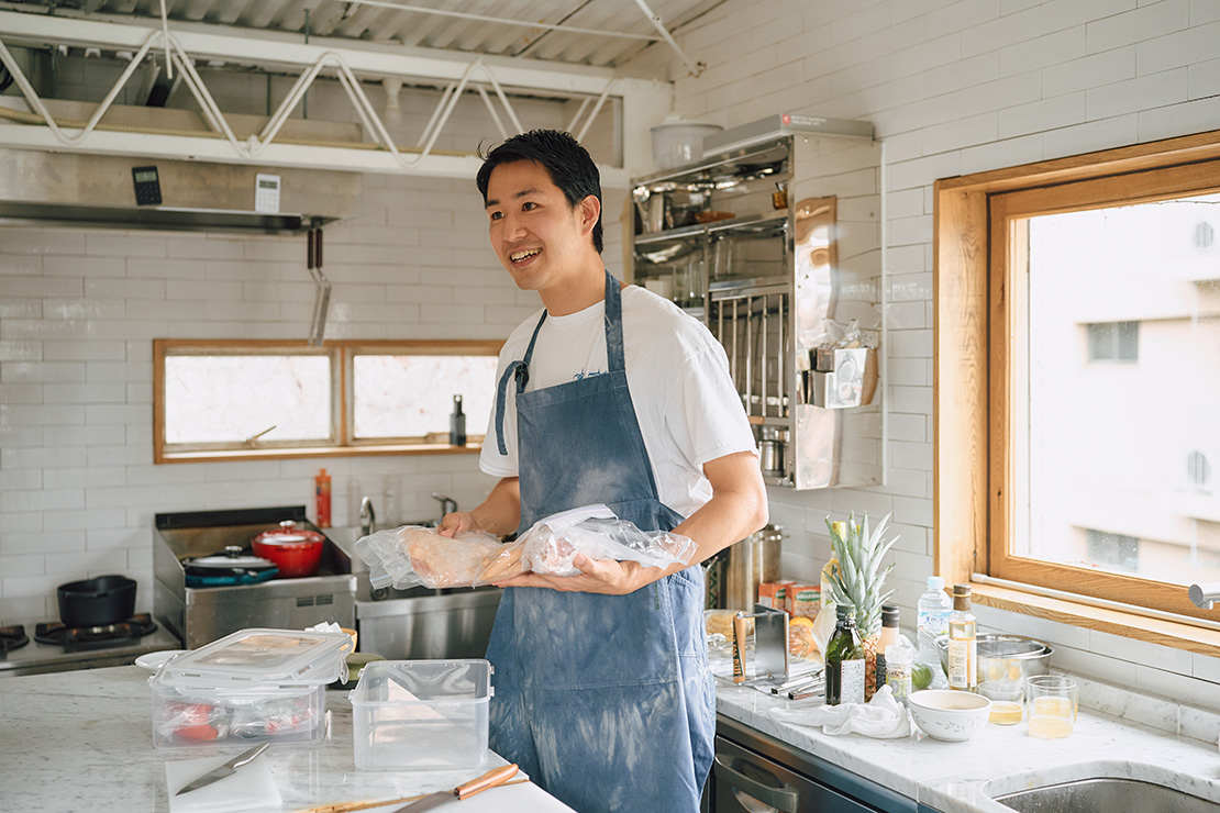 「料理家の母親が自宅で料理教室を開いていた影響もあって、料理するのも食べるのも大好きでした。母に小さい頃からいろいろな店に連れて行ってもらい、本当においしいものや料理の奥深さと楽しさを教えてもらった経験が大きいと思います。20代になると仲間で集まるときに自分が料理する機会も多く、そのうち評判になったんです。なんとなくいつかは料理の道に進むのかな、程度に考えていたころ、イベントのシェフとして徹夜で仕込みをしたりだとか、さまざまな機会をいただいたりするうちに、料理を一生の仕事にしたいと思うようになりました」