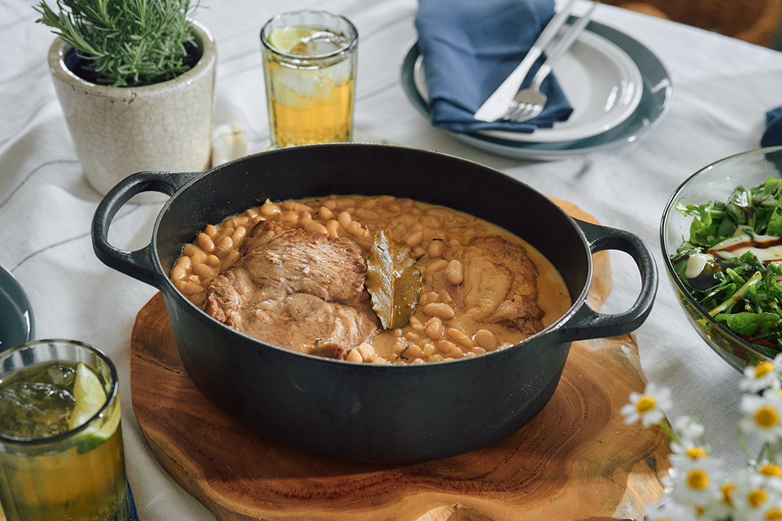 - 30分ほど経ったら、水気を切った白いんげん豆を鍋に加え、蓋をして弱火で10分煮込み、カスレは完成。
