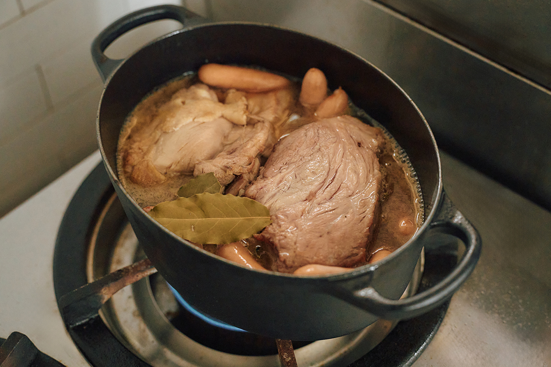 ワインと調味料、白いんげん豆を加えて煮込んだカスレのお鍋から立ち上がる良い香り。