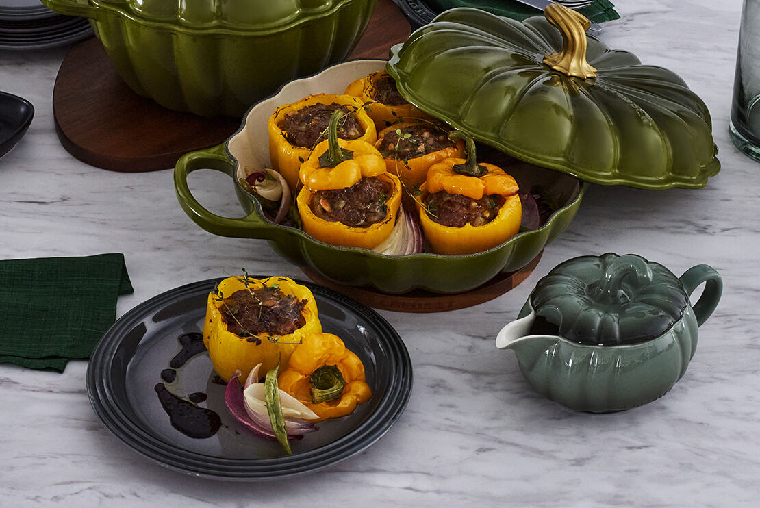 ホーム > ル・クルーゼで作るレシピ > ハーブを効かせたパプリカのファルシ