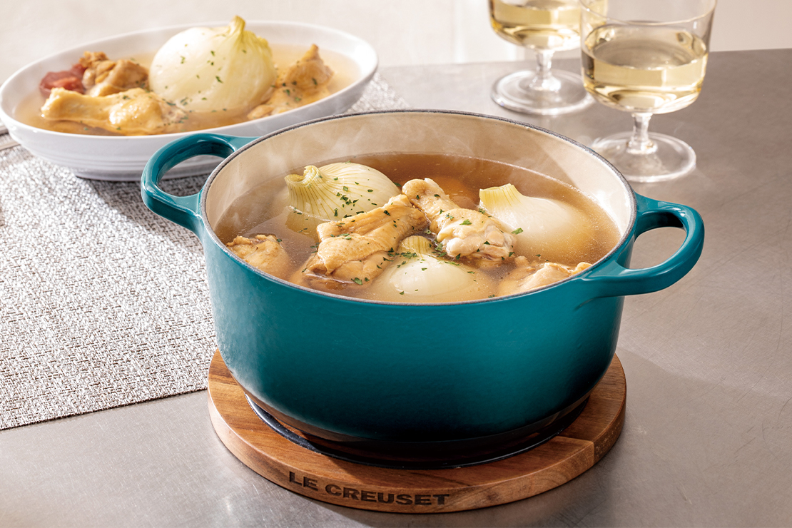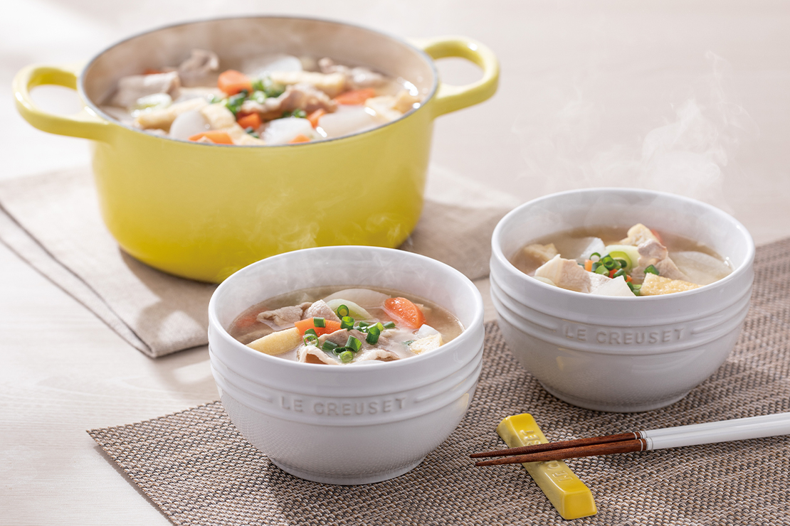 季節の食材とル・クルーゼのお鍋で、素材の旨みを引き出した温かな一杯を。
