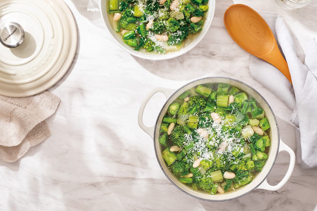 ハーブと春野菜のグリーンミネストローネのレシピはこちら >