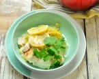 スモークサーモンのはらこ飯風・かぼちゃのバター味噌スープ